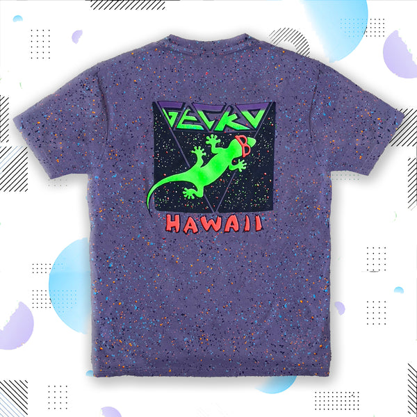 Every tee is splattered by hand and the paint glows in the dark with a wild cosmic pop -- totally different from the OG pink-green-blue glow. Featuring the legendary “New Wave Gecko” graphic from ’88–’89,