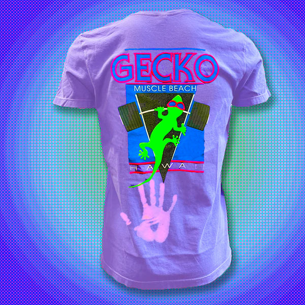 Gecko Hawaii “Muscle Beach” 1987 Re-Issue! Puff-Ink! First Time on a HyperFlash color-changing tee!